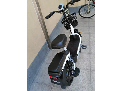 4、雅迪YD800DQT-22D电动车车子很小巧,骑起来非常轻松,而且没有什么震感,对于我们这种不敢骑电动车上路的小个子来说,这个车简直就是福音,特别轻,不用担心扶不住车,比一般的电动车都要小,上班很方便,感觉就和自行车一样骑起来没有压力,非常好!特意骑了40km再来评,还行,性价比高,最高速度大概能跑到40码