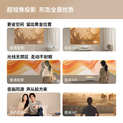 极米超短焦艺术投影M1套装版 24cm投百吋 2.1声道31W大音响 激光电视平替(含百吋超短焦抗光幕布 包安装)到手价格不高于6288元。