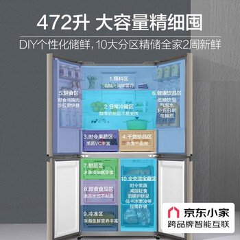 3、海尔BCD-472WGHTD7DL9U1冰箱高端大气上档次,看好这款很久了,耗电小,无噪音,第一天下单第二天就送到家,一直信赖京东,家里的大小电器全在京东自营买的,质量售后有保障。