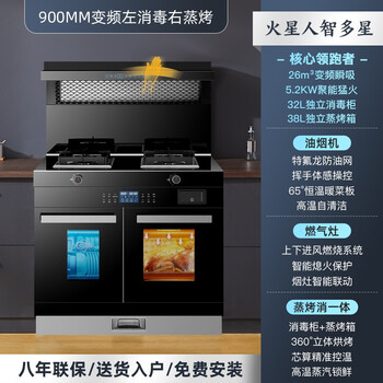 - 商品名称:火星人智多星集成灶蒸烤一体集成灶消毒柜一体式集成灶【变频-左消毒-右蒸烤】26爆吸+5.2KW猛火天然气