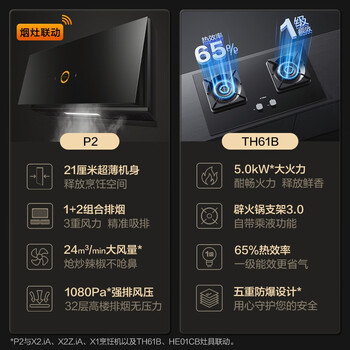 方太油烟机抽油烟机套装A-MAX方太集成烹饪中心1灶具天然气 全面屏 烟灶联动灶套装P2+TH61B 烟灶组套到手价格不高于6099元。