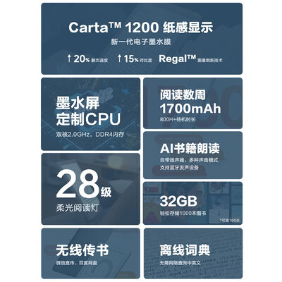 - 功能:词典,蓝牙听书,阅读灯