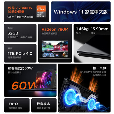 3、联想小新Pro14 2023锐龙版笔记本观察这款笔记本很久了,性价比很高,固态硬盘,16g运行内存,2g独显等等,配置比较高,属于轻薄本,外观很不错,平时偶尔玩游戏,办公为主,两者都兼容,很不错,值得!